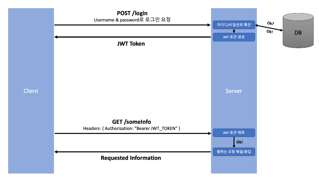 서버는 클라이언트에 대한 정보를 저장할 필요가 없다. 토큰 해독이 되는지만 판단하면 된다.